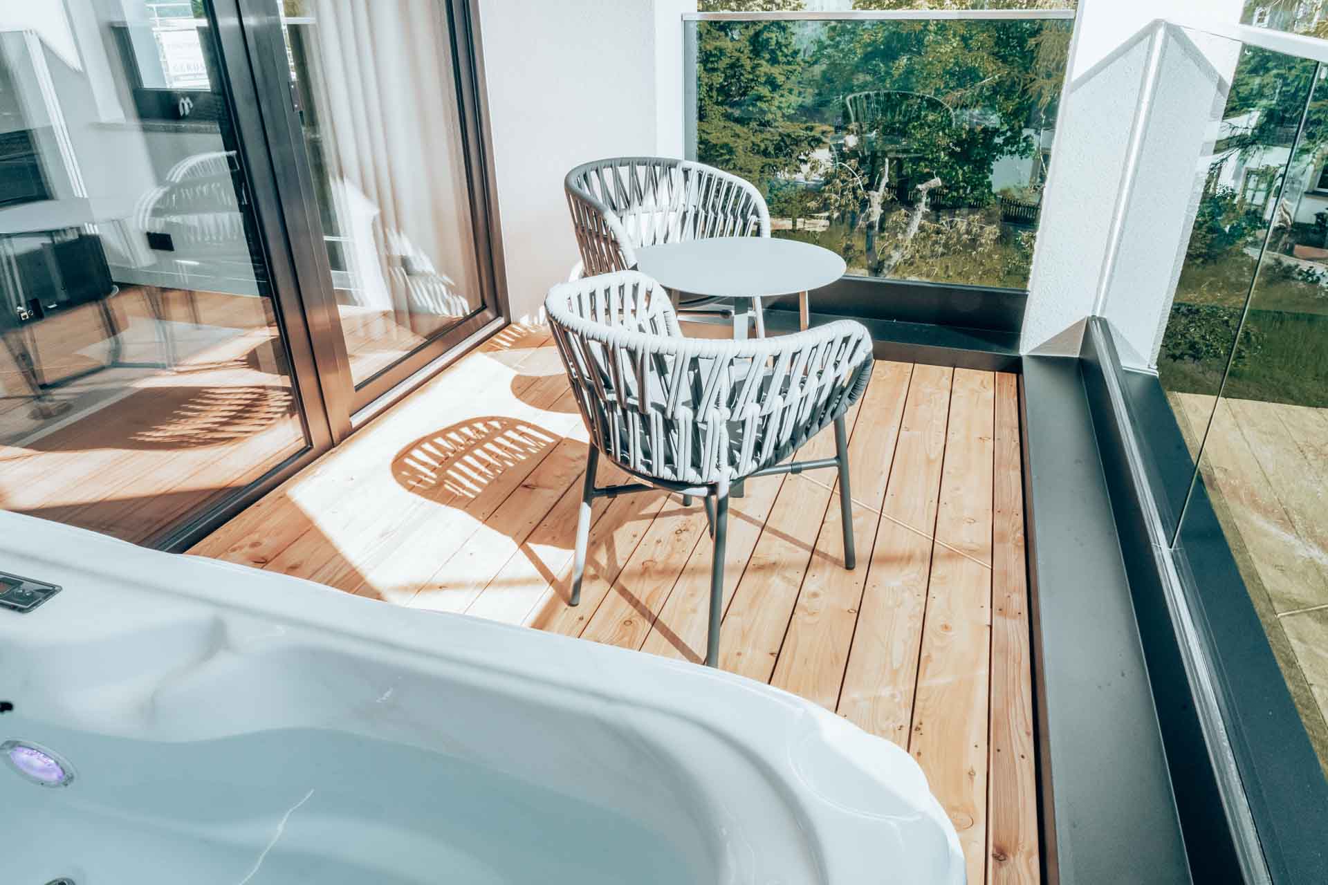 Das angenehme Blubbern des Whirlpools, der Ausblick vom Balkon, sanfte Musik im Hintergrund – all das schafft eine Atmosphäre, in der Ihr Körper zur Ruhe kommt und der Geist auf Reisen geht.
